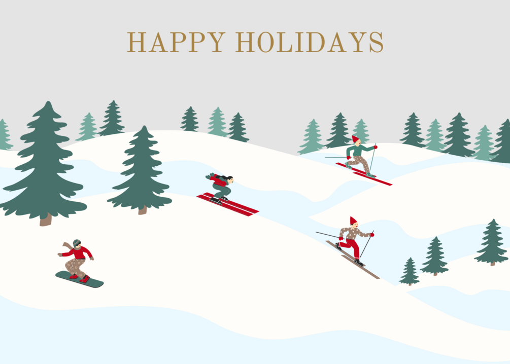 Grey White Green Cute Minimalist Skiing Happy Holidays Digital Card
